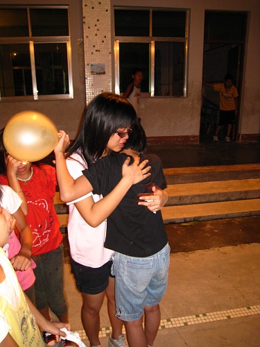 文体组、宣传组和后勤组的小品——《三下乡那话儿》演绎了下乡以来的点点滴滴:开始时的紧张无措,孩子们的调皮捣蛋,生活的酸甜苦辣……分不清戏里戏外,在小品最后,《祝你一路顺风》的音乐响起时,队员们竟声息哽咽,难以自持,台下的小朋友们更是哭作一团,满场尽是抽噎声,连一些家长也被这样的场面所感动。想起并肩走过的十五天,想起那一张张天真的笑脸,含着眼泪,队员们唱起了队歌《一起走到》,无以用言语表达数日的感慨与此时此刻的心情,唯有歌声,倾诉着一切。