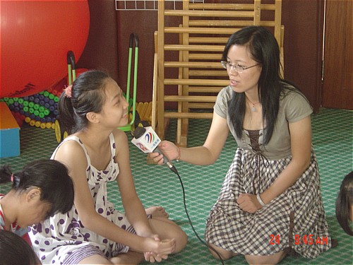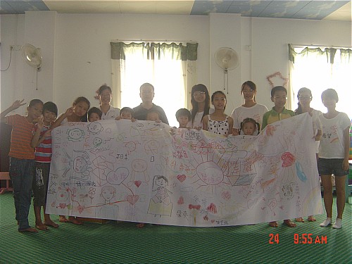 来到孩子们的“乐园”,队员们和学生们迎来了残联孩子们灿烂的笑脸。残联孩子们是一群聋哑儿童,落落大方地与来访者握手,用含糊的声音,很努力地说:“拉拉手,好朋友!”看到与自己年纪相仿的残疾小朋友时,学生们的脸上浮现出凝重,但他们也用真诚的笑容回应。