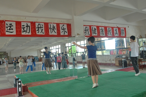 图书馆的舞蹈室里,三位教华尔兹的老师向学生们传授着基本动作。等到临下课时,学生已经大致学会了基本的舞步,并能跟随着老师翩翩起舞,整齐划一的动作煞是令老师欣慰。街舞的难度就高多了,到了最后,只剩下三个男生“坚守阵地”跟着街舞老师学动作了,其他同学则都转移到“华尔兹”的地盘上去了。