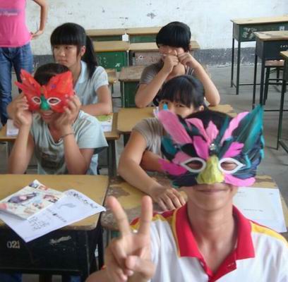 讲到巴西的嘉年华,小州变魔术般拿出了几个彩色的羽毛面具,让同学们亲身感受一下化装派对。对于孩子们来讲,尝试新鲜事物当然是最开心的事了,只见同学们个个捧着面具爱不释手,玩得兴高采烈。