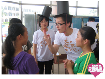 7月18日下午,由广外英文学院“曦望队”与华师的下乡队伍联合组织的“Happy智多星快乐游园会”在石牯塘中学的教学楼大厅里热闹开幕。学生们对新鲜有趣的活动兴趣盎然,纷纷参与,现场熙熙攘攘,欢声笑语不断。