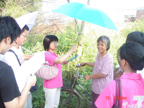 | 阿姨,我来帮你扇扇风   面对困难,我们并没有气馁。我们向农民表明来意,并用诚意打动了他们,得到了农民朋友的热情招待。这次调研,“蒲公英”服务队不仅仅想知道农民是否有购买农村合作医疗保险,而更多地把焦点关注在农民们在购买合作医疗保险后是否能真正受惠,特别是农村合作医疗保险制度的实施能否提高当地农民的生活水平。因此农民们对采访相当配合,还盛赞队员们是“为人民服务的大学生”。 |  |  | 与村民亲切交谈   调研结果显示,素龙镇凤塘村民普遍购买了农村合作医疗保险,由于政策在实施过程中难免会遇到一些问题,农民们对此提出了中肯的建议。“蒲公英”三下乡服务队将从农民、各级医疗机构、村委会及政府几个方面充分了解农村合作医疗保险实施情况,认真总结整个调研过程,并作出素龙镇农村合作医疗保险的调研报告,反映农民的建议,解决农民所担忧的问题。这次调研活动体现了“蒲公英”三下乡服务队“知群众所忧,急群众所难”的精神。 |
