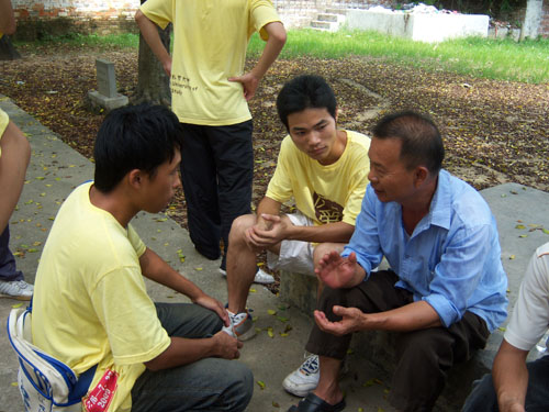 当天火辣辣的太阳丝毫没有阻碍该队“有爱”精神的宣传热情。“友爱”服务队此次的宣传主要是针对甲型H1N1流感的防御知识以及安全套的使用方法。当地村民的热情十分高涨,宣传人员还没准备好相关资料,他们便主动过来询问相关的问题,队员们随即为其介绍。