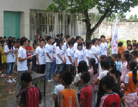 各项准备工作完成后,开学典礼正式开始。该村村委以及平原小学校长先后发表讲话。村委及校方对此次义教活动寄予了厚望,并对领航服务队表示欢迎。随后,队长发表讲话,介绍广外三下乡特色项目及活动目的,概述队伍从组建到今天一路走来的历程,并对校方的大力支持与配合表示衷心感谢。