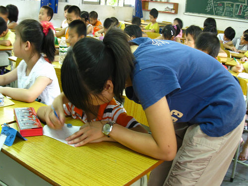 经过一天的授课,学生与老师之间已经基本熟悉起来。老师薛仲飞的名字在孩子们口中经历了多重变换,从“飞飞老师”到“飞机老师”,再到“狒狒老师”,学生的调皮让人忍俊不禁。一位学生“真诚地”对老师温婷婷说:“老师,我希望你再长高一点”,孩子们的“经典语录”已经成为队员们最津津乐道的话题。而这些“语出惊人”的孩子们也特别懂事,班主任刘珂嗓子疼痛,一位学生主动端水给她喝,“老师,你嗓子疼,要多喝水。”调皮的孩子也有体贴的一面,让队员感动不已。