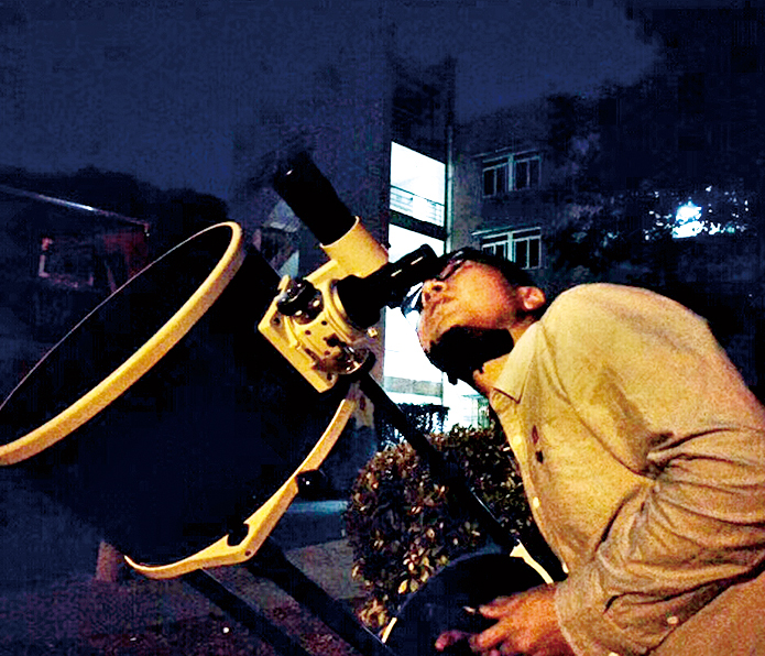 新成立的天文社选择在一个晴朗的夜晚举办第一次活动——观测星空,许多从未观测过天象、从未接触过天文望远镜的会员们兴奋地聚在一起。每个社员都能借助天文望远镜观看星空,围观的社员满怀好奇地围住观看的同学,不停地问:“看到了吗?看到了吗?”看到的同学,亦止不住想要分享的喜悦:“看到了,很美,你们快来看!”在看到美丽的星空的时候,有人提出说,星星离我们几十光年或者更远,当那束星光传递到地球,被我们看到时,那颗星星可能已经不在那个位置了,甚至,已经不存在了。这不禁引发了天文社社员的思考,一位同学说,“这让我觉得‘所见并非真实’颇有些道理,这不仅限于星空,生活里很多事情也是如此。是星空让我懂得了,所见所闻未必百分之一百符合事实,要时刻握紧自我理性思考的宝贵权利”。