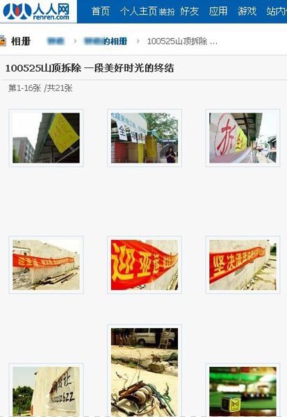 人人网网友用相册“祭奠”逝去的山顶(网络截图)
