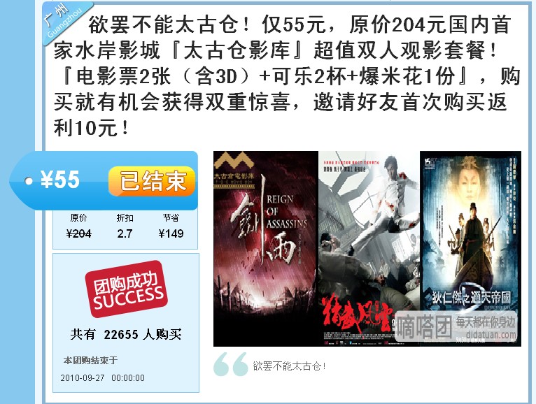 相比起仍在观望的同学,一些精打细算同学已经在几次的团购中尝到了甜头。经贸学院欧阳同学上星期在嘀嗒团的网站上团购了两张太古仓电影票,并去了电影院观看《盗梦空间》。她说:“我们是星期四去的,兑票的人不多,加上两杯可乐和一桶爆米花,我觉得55元挺值的。” 法学院小郑认为团购“十分实惠”,他的朋友曾在大众点评网上,以68元的价格买下了一个原价六百多元的美容SPA套餐送给女朋友,另外还用39元买下了两张3D电影券。