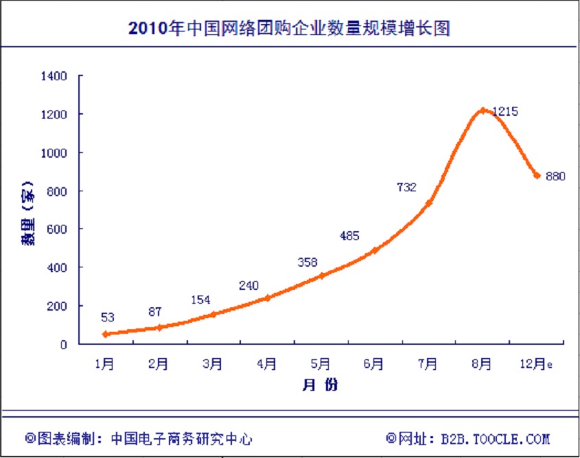 记者通过近日发布的《2010年中国网络团购调查报告》了解到,截至2010年8月底,国内初具规模的网络团购企业数量已达1215家。其中尚未包括未开团或已倒闭的256家团购网站,及刚开团或开团次数很少的小型团购网站。目前,各团购企业主要集中在经济较为发达的“一线城市”,如北京、上海、广州等。据中国电子商务研究中心调查发现,在团购网站所提供服务领域上,休闲娱乐、食品餐饮两大类最受欢迎,占了团购主分类的半壁江山。