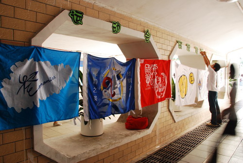 墙壁上的横幅排列显得有点无序(图/杜彦玲)