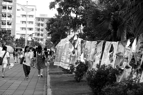 曾经,校道两旁各式各样的宣传层出不穷(图/杜彦玲)