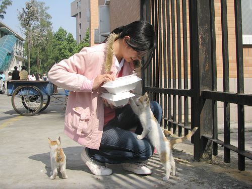他们说,大学的生活因为有猫的存在而增添了不少乐趣。许多毕业的学生回忆起母校的时候,心里还总是怀念起以前学生时代的几只猫。确实,不少同学和猫之间有着许多有趣感人的故事,因一起的相处而产生了感情。据闻,前段时间,有一只出生不到一个月的小猫,因玩耍掉到楼下摔断了腿,男生们便将小猫带到医院,经过几个星期的悉心照料后,小猫慢慢痊愈了。9栋的一位男生,为了防止猫传染疾病,还专门带它到农讲所附近的医院打了几百元的疫苗。