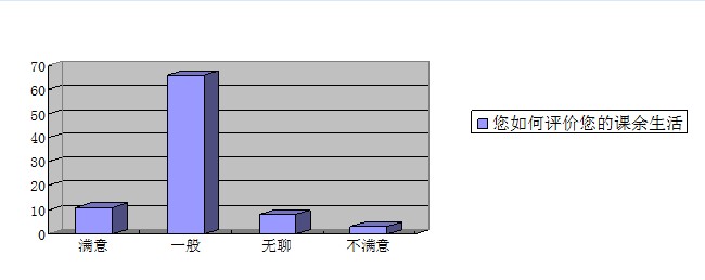 虽然大部分同学都认为应该在做好学习安排后,才能进行一些娱乐活动。然而,这些想法往往很难付诸实践。调查结果显示,只有28%的同学会按照自己的职业生涯规划认真地安排课余生活,其余同学均只是停留在对课余生活稍作安排或者干脆不安排。例如,有时候一逛街一上网就花掉了整整一天,把原本的计划全都打乱了。所以,在此次调查中,仅仅只有11%的同学表示对自己的大学生活比较满意。