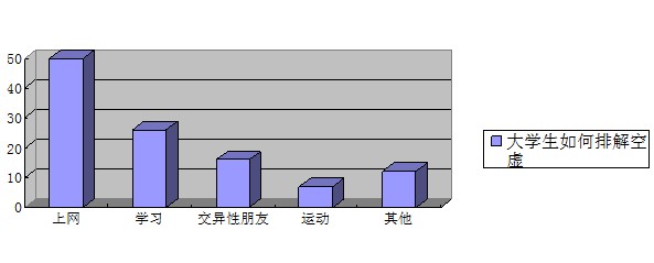 其次,有很多同学对自己的课余生活安排有点盲目。主要表现在不知如何统筹安排自己的课余时间、对自己想要或者需要获得哪些知识感到困惑等等,不少同学由于过度依赖网络,无端地虚度了许多时光。中文学院陆同学就表示,自己在上大学之前曾下决心要尽量涉猎各种书籍,但上大学后自己就被电脑游戏所吸引,对看书几乎失去了兴趣。