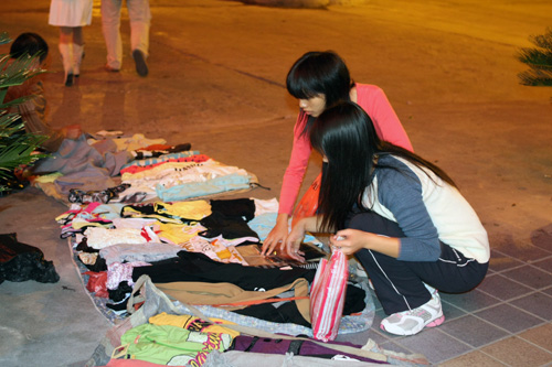 在地摊前“淘”廉价衣裳
