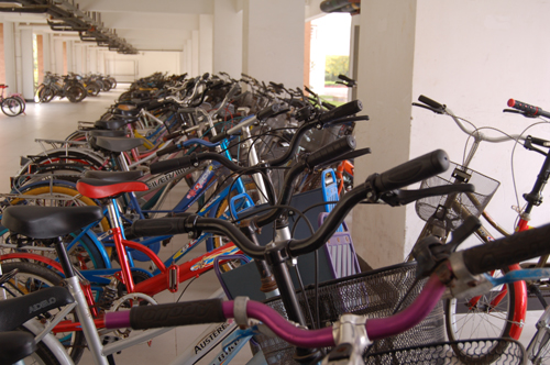 宿舍区的单车摆放情况也不容乐观。有车之处,颇有“车”满为患的味道。