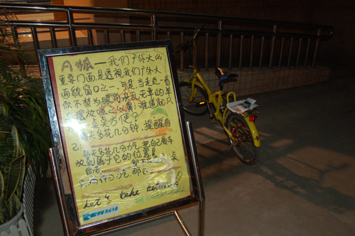 宿舍区内单车成“灾” 呼吁标语别样“红”