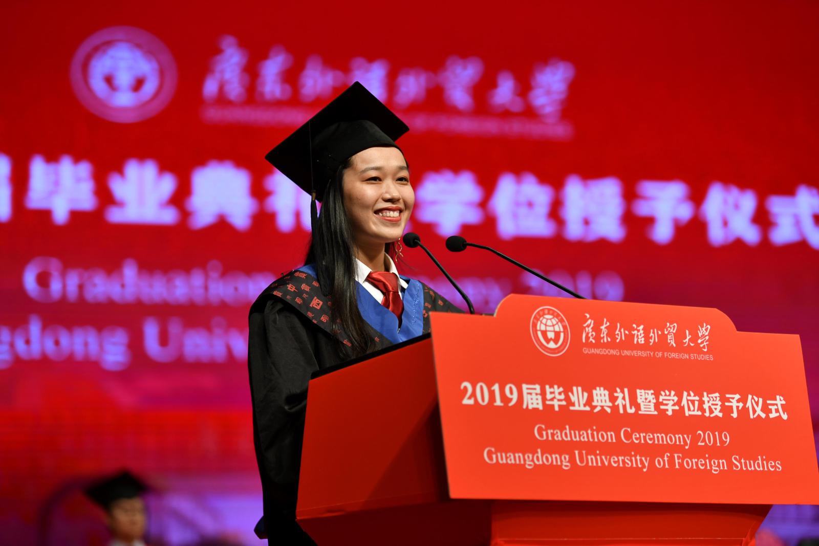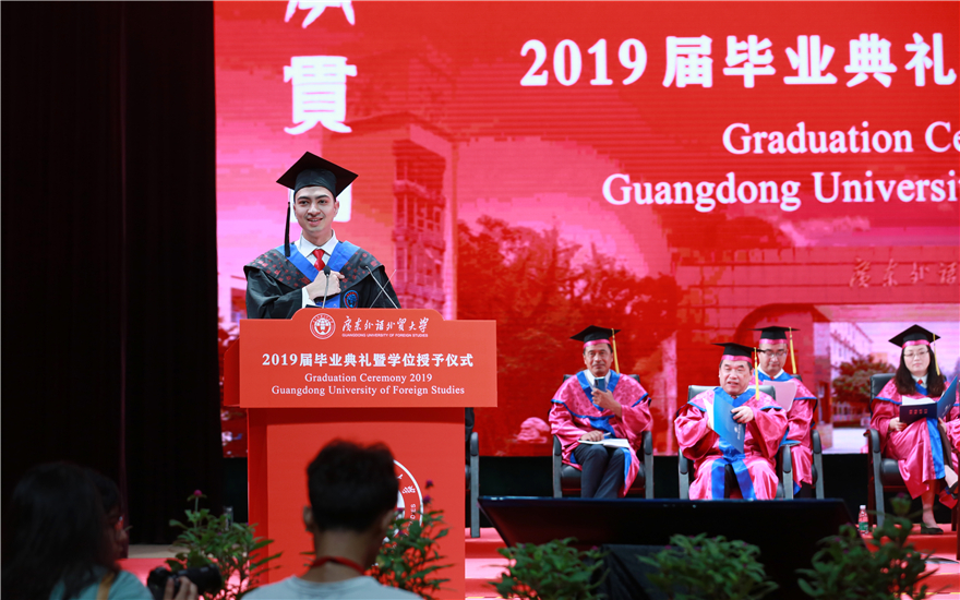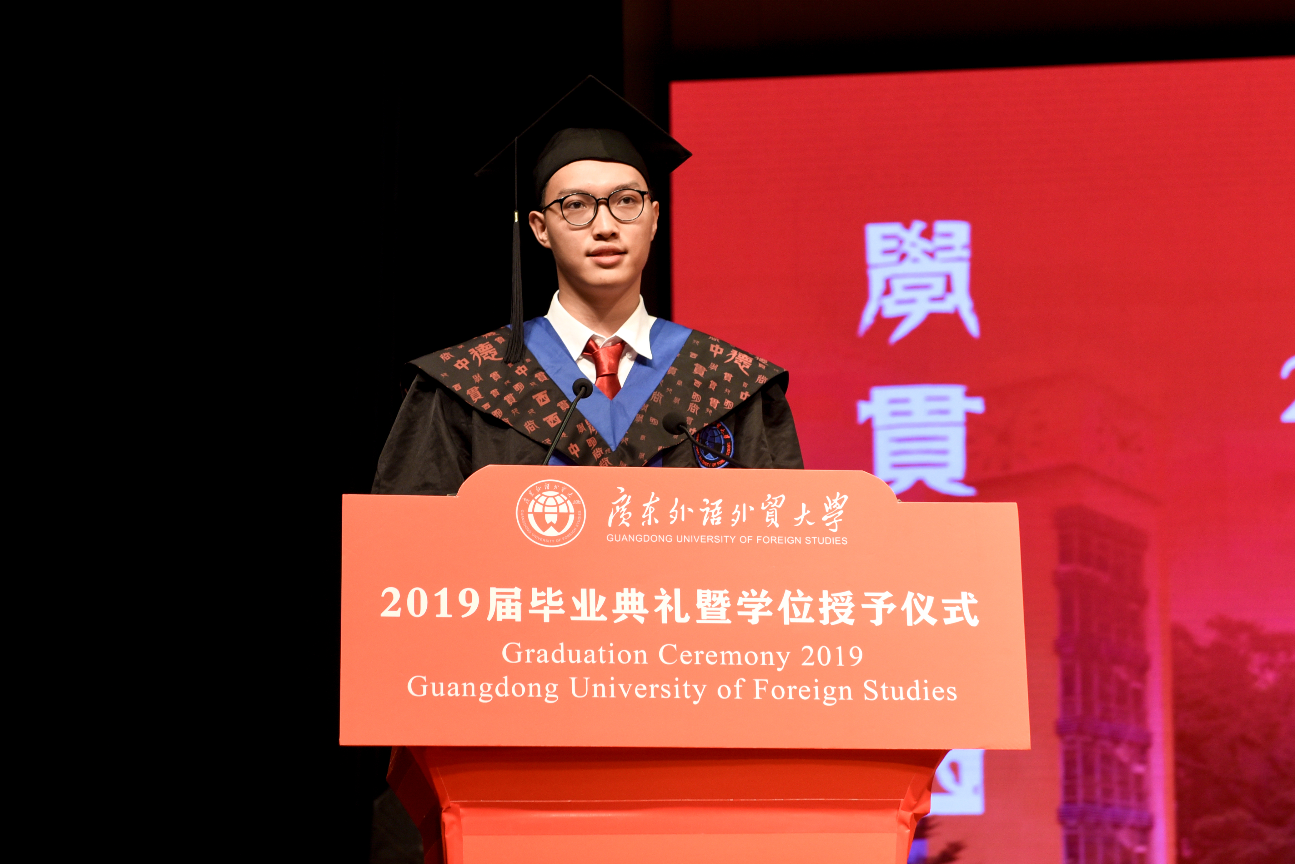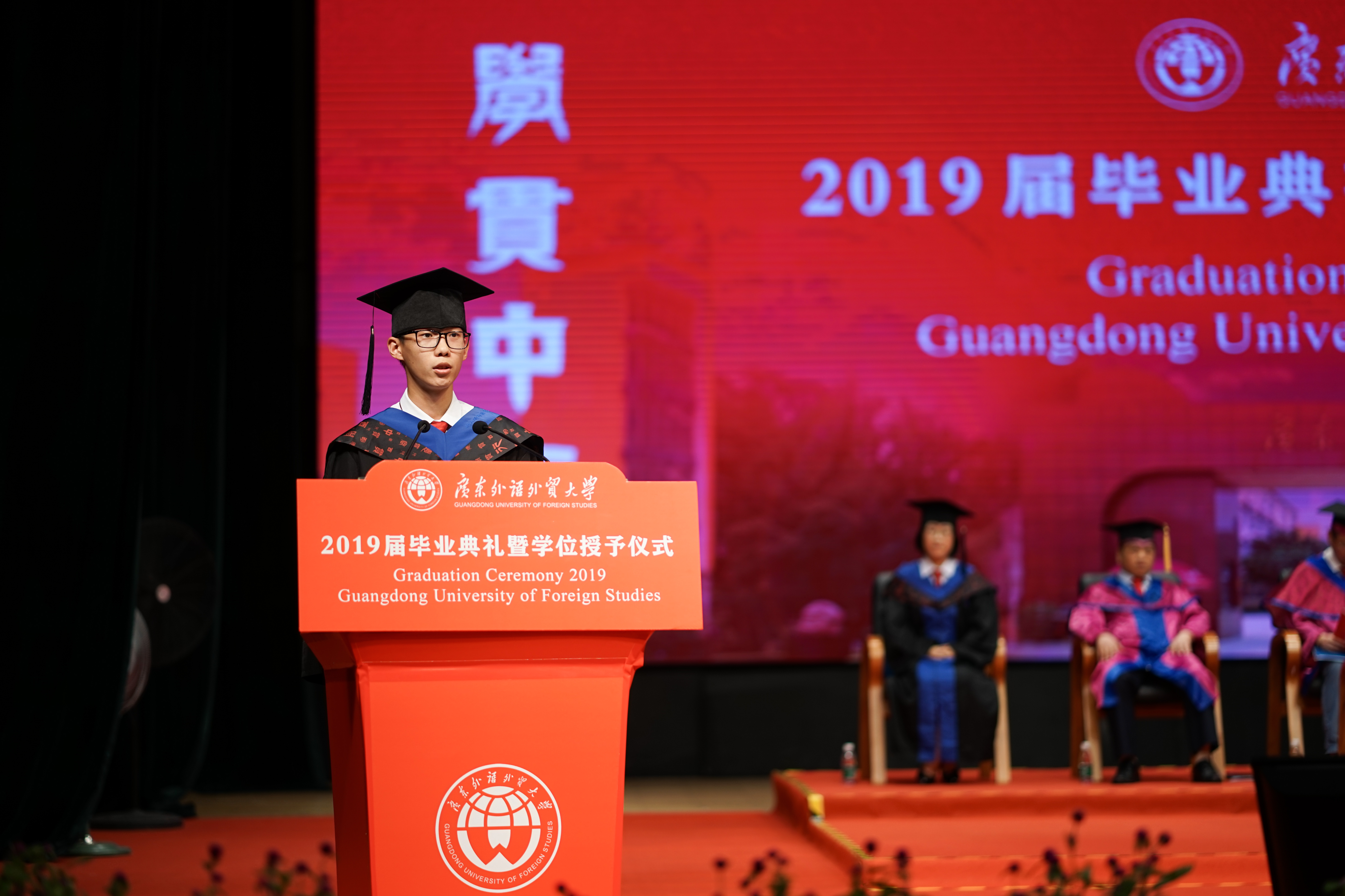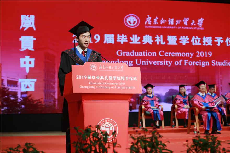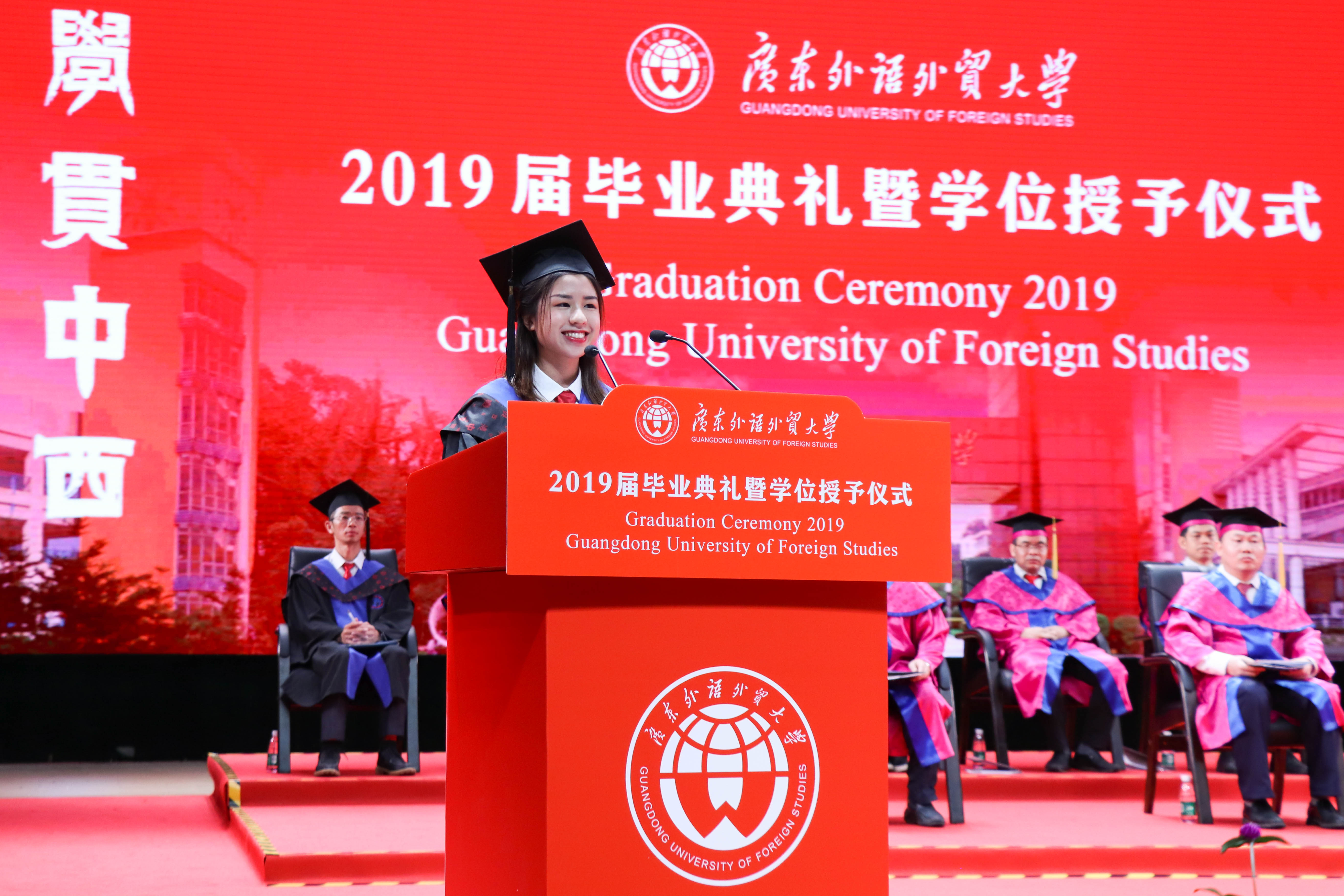 今日过后,我们即将踏出广外的大门,去开启人生一段全新的旅程。我相信,不管我们走向何方,都必将迎来自己人生崭新的、更广阔的舞台。