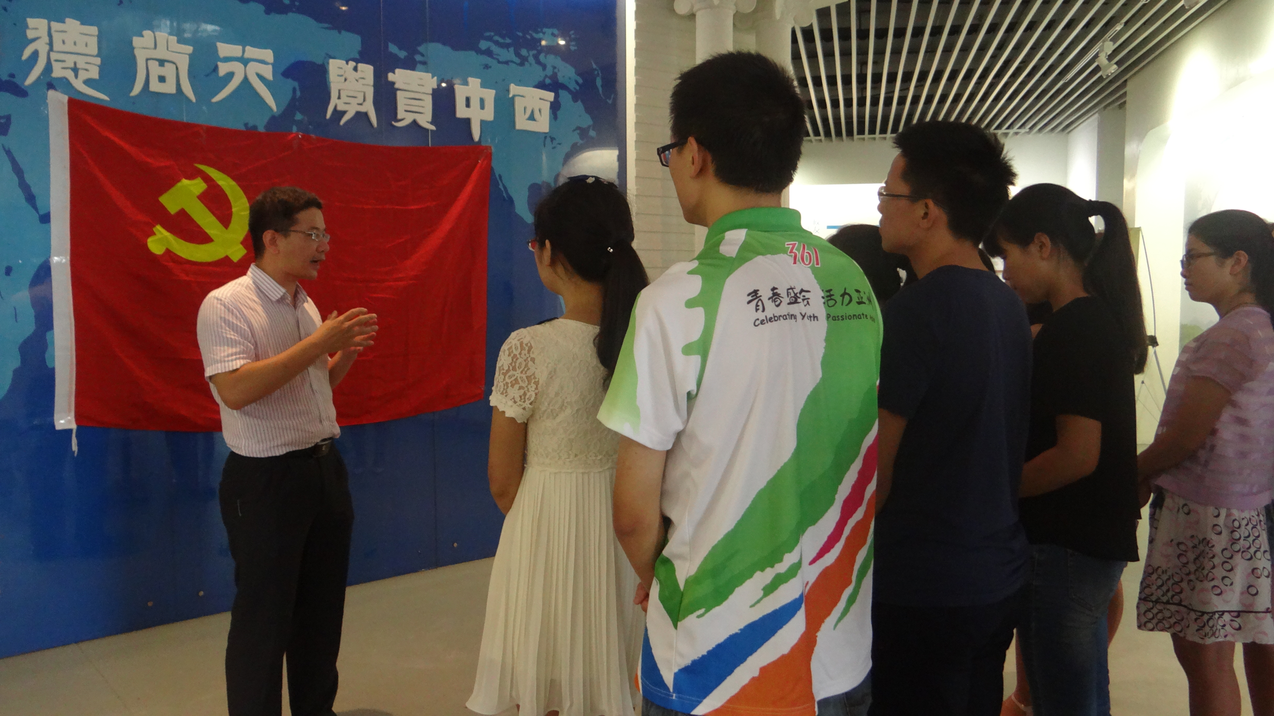 参观完毕,由辅导员王斌领誓,全体党员同学进行了激动人心的入党宣誓,面对着鲜红的党旗,举起右手,握拳在肩,庄严宣誓加入中国共产党。