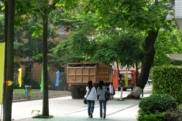 由于货运车行经的部分路段正好也是学生的活动区,一些潜在的安全隐患也慢慢展露端倪。来自西语的苏同学告诉记者,施工车车速过快,对过往行人尤其对经常需要去四教早读或者上课的同学造成一定的影响。据他回忆,他有一次赶着去上课,途中接了个电话,车子刚好从他侧面驶过,所幸没有发生意外。小张也对此路段的安全问题表示担忧,看到很多大卡车在校园里穿梭行驶,她走路时不得不多瞻前顾后,“一旦出现了交通事故,后果不堪设想”。