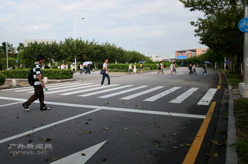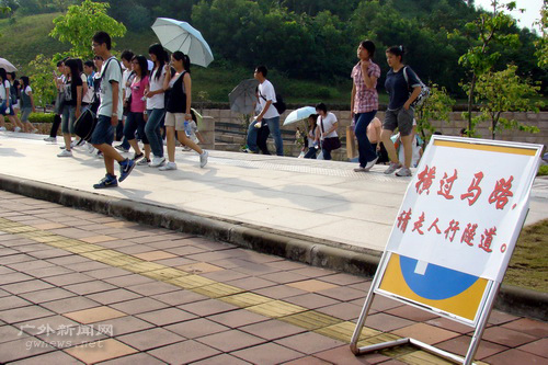 中环路是学生由生活区到教学区的必经之路,也是安全隐患较大的地方。谈起以前学生乱闯马路的情形,周知称其“触目惊心”,特别是入夜后的状况更让人担忧。现在转行隧道,虽然学生暂未适应,但是多走2、3分钟的路途可以大大降低风险,无疑是利大于弊的。周知介绍,校卫队员将在上、下课的高峰期维护交通秩序。“没有拉起铁丝网的路口有校卫值勤,广外通往中大和广中医的中环路段将严禁汽车进入。”