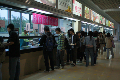 常言道:“民以食为天。”南北校区的饮食条件也让许多学生津津乐道。南校区设有文采园、风采园和博雅园三个饭堂。值得一提的是,南校饭堂的取菜区有清晰的分类标志,菜类、鱼类、扒类和豆制品等分列于不同窗口并有明确的指示牌,这就避免了在北校饭堂常出现的拥挤情况。另外,文采园的卫生间还设有残疾人专用设施,体现了伟德bv国际体育人性化的校园建设。由于大学城内高校普遍使用“一卡通”,南校的同学能到其他高校饭堂用餐。这样不仅为学生提供了更多就餐的选择,更促进了各校饭堂之间的良性竞争。而北校区虽设有四个饭堂,但规模较小。其中,位于图书馆附近的清雅园所提供的饭菜档次较高,设有食街和海鲜酒楼,但价格则比其他饭堂略高一些。