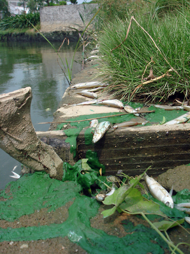 流进语心湖的河水颜色没有多大的变化,但水面上依然漂浮着一两条死鱼。经常在湖边巡逻的保安向记者说到,“从军训时开始,湖水水质就没有以前好,水面上不时会有一两条死鱼,而且水开始有一股臭味,这是以前都没有发生过的。”