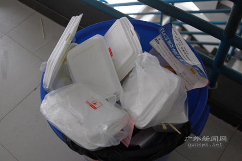 记者看到,一次性饭盒在校园中随处可见,成了校园白色污染的罪魁祸首。炎热夏天到来,这种情况更为明显。饭盒中的剩菜残羹由于长时间暴露在空气中,产生化学反应后散发出异味,并易滋生蚊虫。