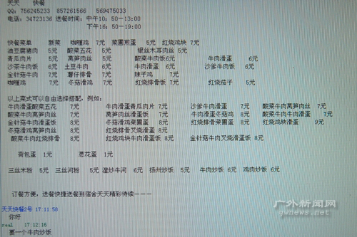 外卖店有专人在电脑前接受学生的qq订单(图片由受访人提供)