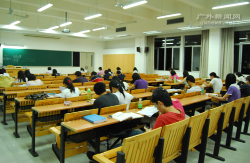 至于教学楼的闲置自修区,不少“考研一族”表示不会将其作为复习基地,因为课室的开放时间不长,又不固定,将复习资料搬来搬去很不方便。管理学院大二非考研的陈同学说,因为图书馆和24小时自修区人太多,自己经常在教学楼的闲置教室自习。其实教学楼的教室空间很大,而且学习气氛不错,很安静。她认为,如果不打算学习到很晚,在教学楼教室里的自习也很好。