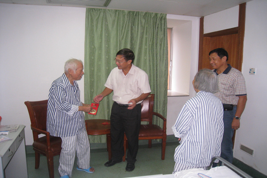 陈建平为住院老同志送上慰问金
