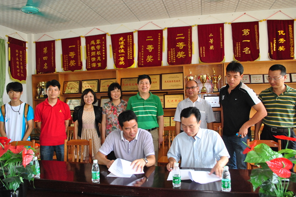 最后,金良成代表法学院与联安中学王福权进行三下乡实践基地协议的签约仪式,陈德萍向队员们赠送了慰问品,祝愿三下乡暑期实践活动越办越好。