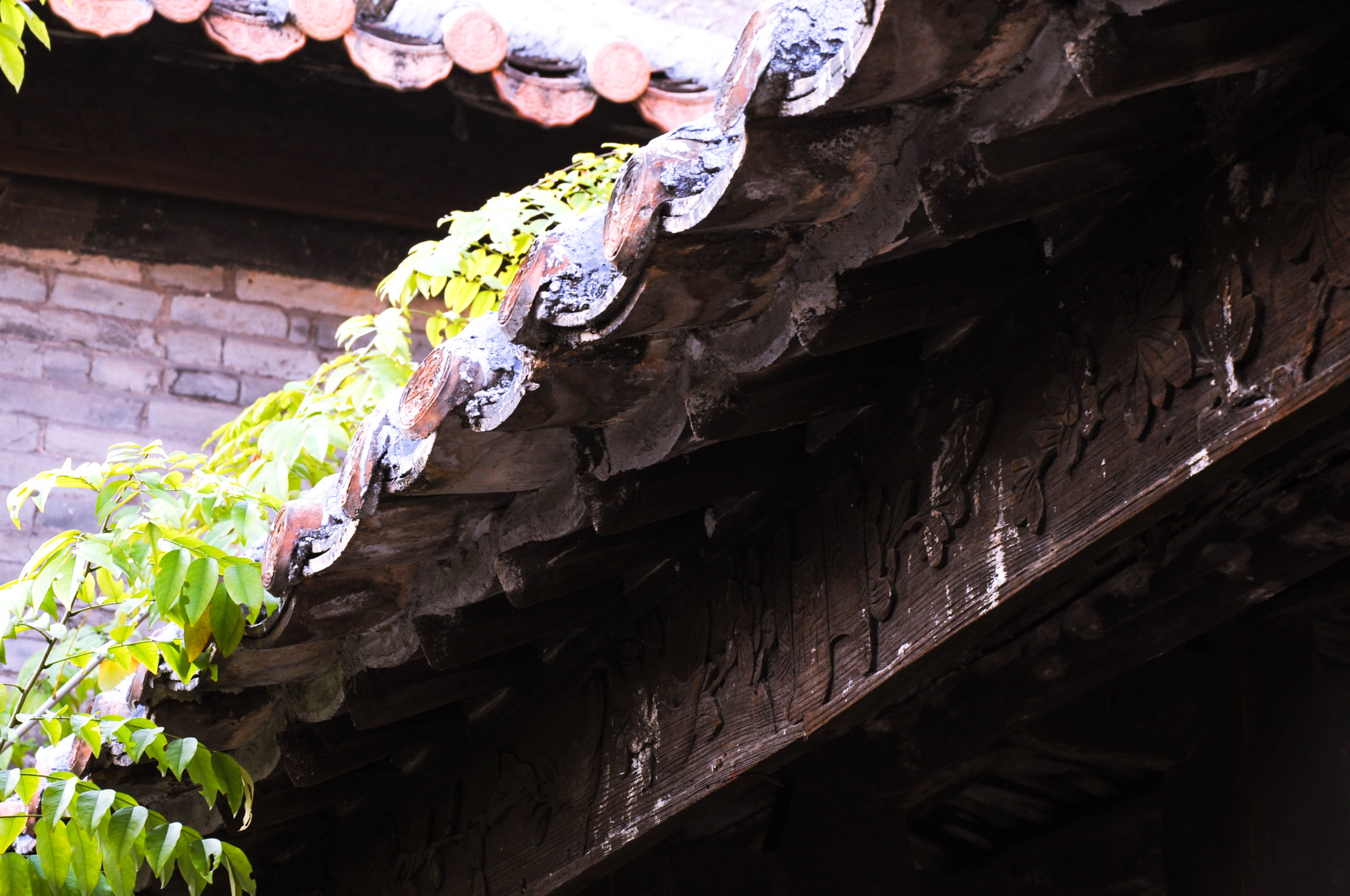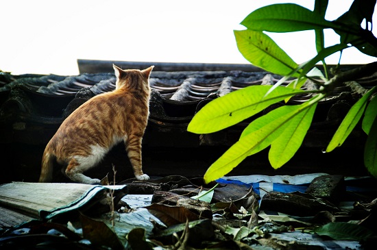 抬头望向屋顶,不经意间发现了一只活泼的小生命,为古村添了一点鲜活动力