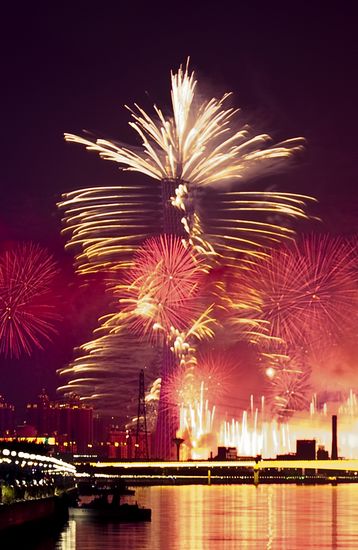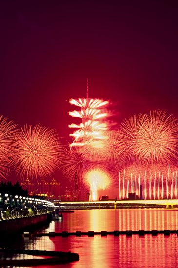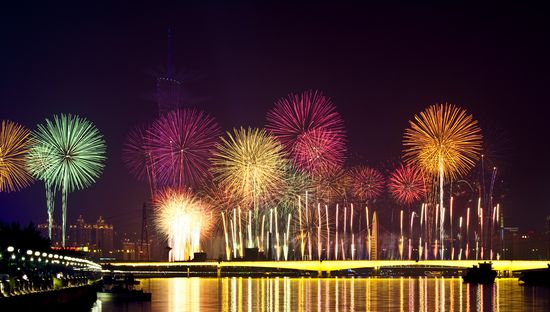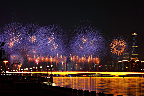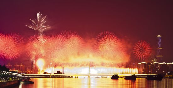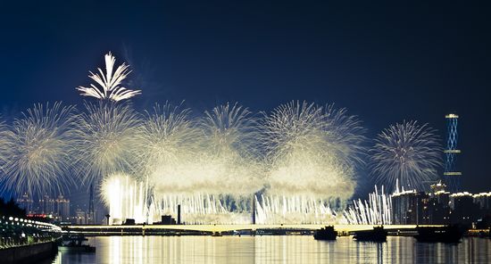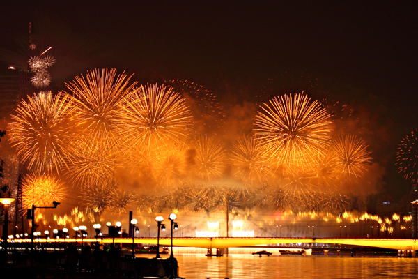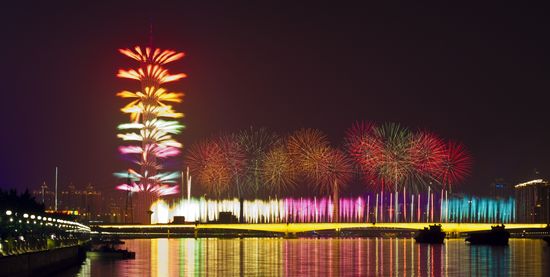 开幕式结束之后,珠江上上演了十几分钟名为“庆典”的烟火表演。