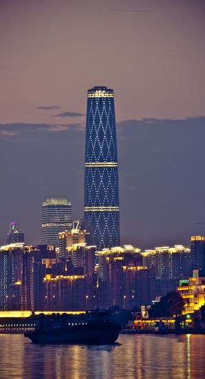 夜幕降临,广州国际金融中心披上斑斓的夜灯