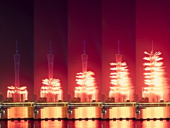 八时整,被誉为全世界最高的烟花倒计时在世界第一高塔广州塔上演