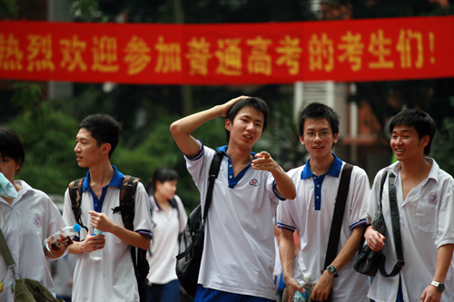 没事自个乐:反正都是热,不如自己活动活动吧,看这位家长,带上自己的DV来到门口不断测试机位,希望待会能在第一时间拍下儿子从考场胜利走出的一幕。 考试后,期待中的喜悦,奋斗的痕迹: