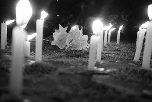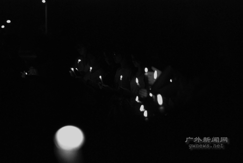 看着悠悠烛光,默默哀悼(图/饶雯君)