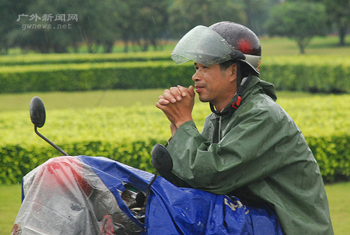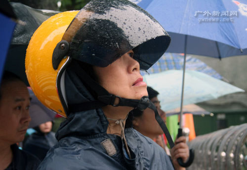 雨中,一名考生家长翘首期盼(图/杜彦玲)