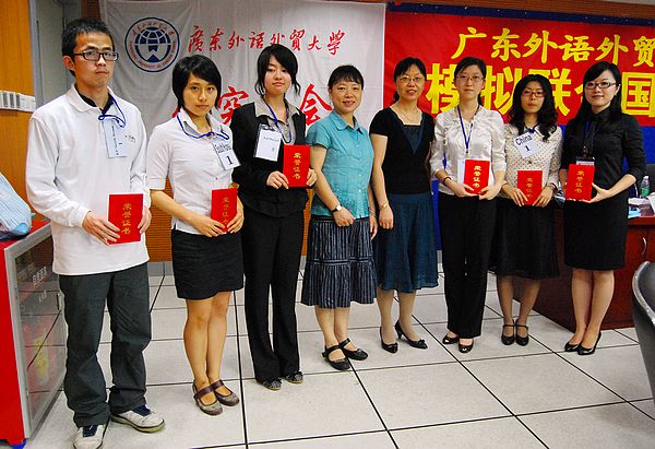 比赛结束,戴桂玉、王巍巍、赵南对选手们积极的表现给予肯定与赞赏,王巍巍和赵南还以过来人的身份向选手们提出了宝贵的参赛意见和建议。敖湘晖、戴桂玉为六名胜出的选手颁奖,并宣布由他们代表广外参加2010年全国模拟联合国大赛。