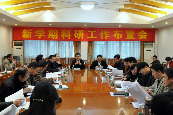 随后,余鹏翼介绍了科研成果统计的三轮审核情况,并对审核有关问题进行了重点讲解。他提到,今年是评奖年大年,各学院可提前做好教育部和广东省人文社会科学奖的评审准备工作,争取好成绩。孙波就2012年科研工作计划细则进行说明。他说到,必须突出科研持续发展力,增强对国家重大科研政策的执行力,继续落实繁荣计划和“走出去”工程,完善校院两级学术委员会功能和重视各项评奖活动。