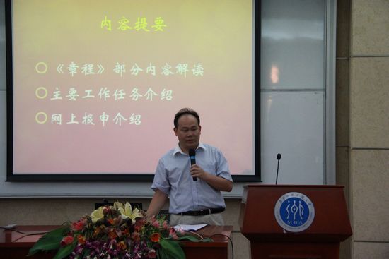 科研处处长阳爱民随后重点介绍了此次选举的工作方案。他首先对《章程》的部分内容进行的解读,接下来详细介绍了各部门和学院的工作任务并演示了网上申报的相关操作。最后,他提醒与会者应于正式投票之前进行投票预演。