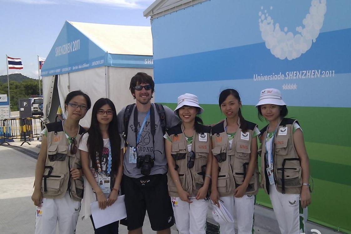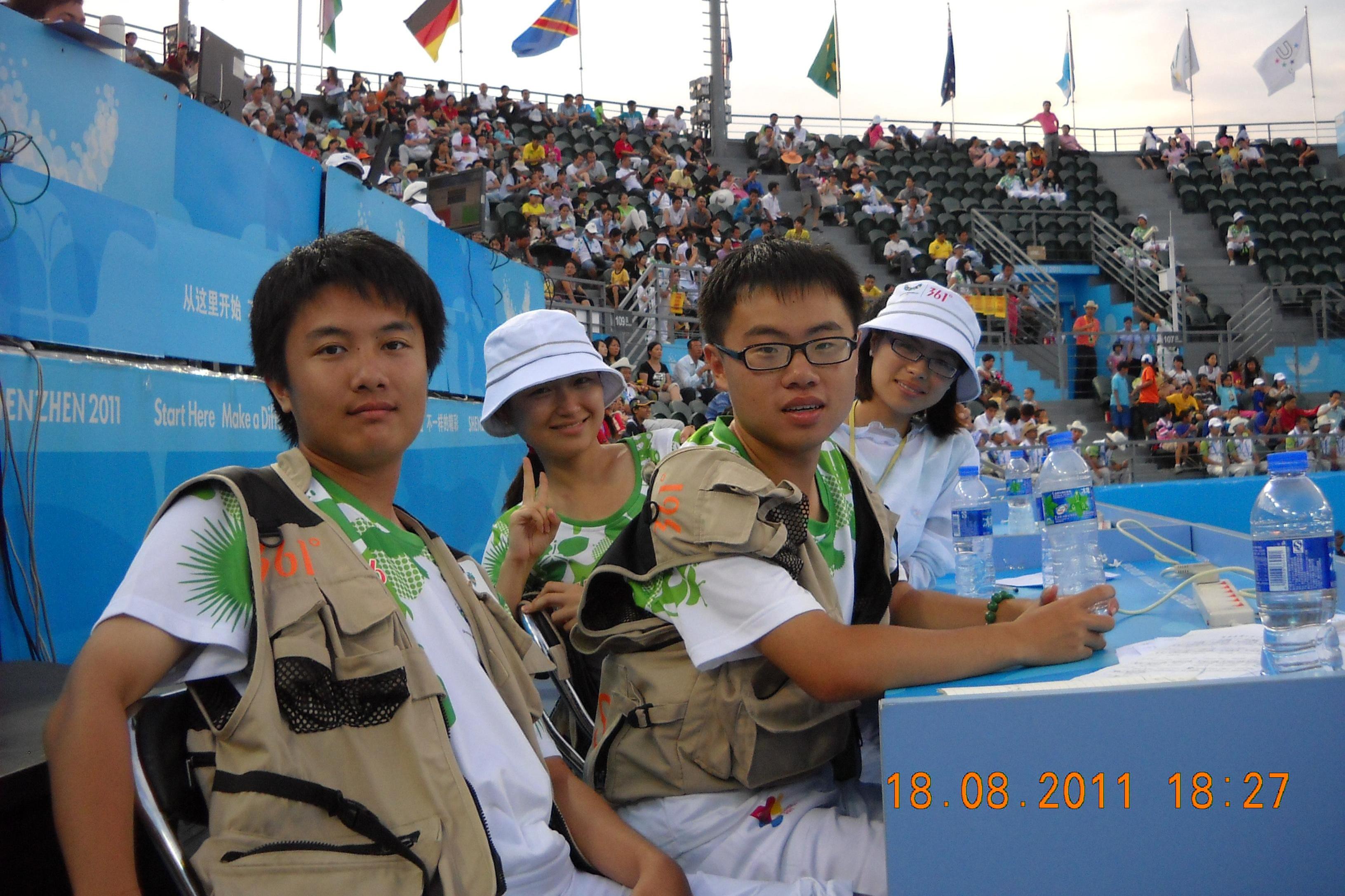 良好的团队运作离不开科学有效的管理,团队指导老师董婷和王秋萍全程在深圳和学生骨干为此而默默付出。伟德bv国际体育180名不同院系的志愿者组成了15支小队,由指导老师、大队长、中队长实行多层次管理。这些学生骨干除了要完成自己日常的赛事工作以外,回到住处还要负责安全统计、食宿保障、交通保障和宣传报道等工作。由于志愿者分布的场馆较为分散,工作时间也参差不齐,有些志愿者深夜才回到住处,董婷和王秋萍两位老师就经常要等到深夜才能和学生骨干开会,了解问题,商讨更有效的解决方案。