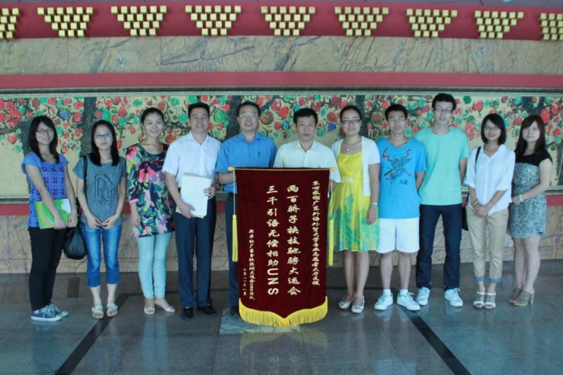 最后,何惠飞代表新华社广东分社向学校赠送了锦旗和感谢信,并与大家合影留念。