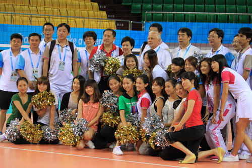 最后,马克·范登普拉斯与随行人员和国魅啦啦队的指导老师陈丹丹以及队员们合影留念。