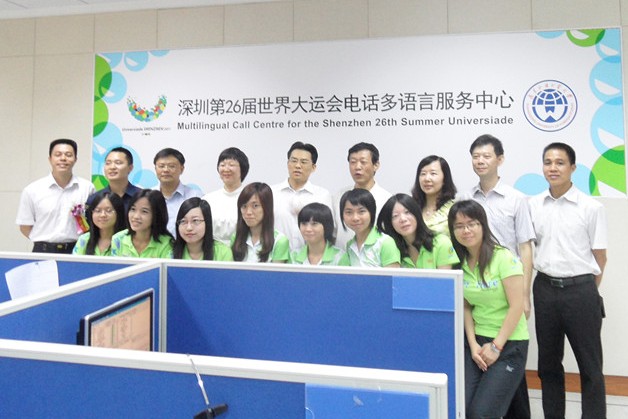 本网讯 8月3日上午,深圳大运会电话多语言服务中心(下称“多语服务中心”)正式运营第三天,团省委副书记陈宏宇、团市委副书记童慧一行在伟德bv国际体育党委副书记许国彬的陪同下,莅临北校六教多语服务中心视察指导。