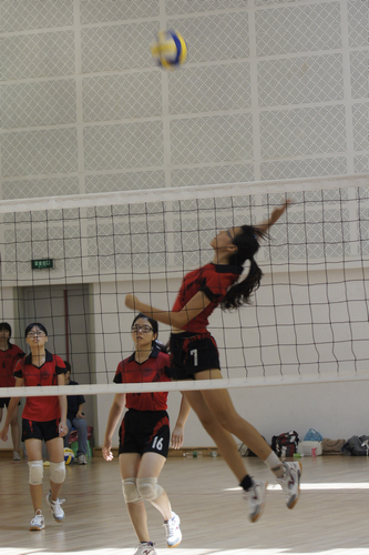 本网讯 8月30日上午,广外女排队在中大大学城校区体育馆迎战中山学院,这是广外女排在省大运小组赛遭遇的第三个对手。一番较量后,广外最终3:0轻松获胜。