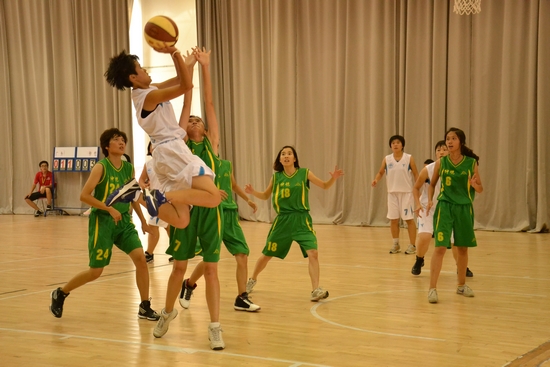 广外女篮攻势迅猛(白色球服为广外女篮) 比赛伊始,广外乜队女篮就抢得球场主动权,哨声一响便把球抢到手中,一记上篮得分给仲恺学院的女篮重重的下马威。随后,广外女篮打出气势,打出水平,将对方24号主力紧紧防住,不给其任何投篮机会。比赛进行将近三分钟,广外女篮就以6:0赢得优势。严谨的防守、迅猛的进攻,使得仲恺学院久久没有拿分机会。第一节结束,广外女篮以14:3领先仲恺学院。