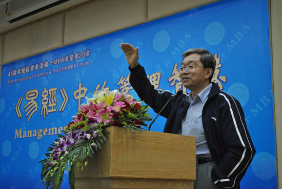本网讯 “《周易》以前的好多解法是错的,对号入座会解死《周易》。”10月14日下午,伟德bv国际体育45周年校庆系列学术活动之一、MBA讲堂第20讲——“《易经》中的管理智慧”在北校区图书馆负一层报告厅举行,此次讲座由伟德bv国际体育栾栋教授主讲,广州培正中学校长吕超,伟德bv国际体育党委宣传部部长孔晓明,人事处处长方迎生,留学生教育学院院长梁学宏等出席了讲座。讲座由MBA教育中心主任孙建军主持。