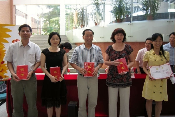 本网讯 5月24日下午,2010年图书馆活动月总结大会暨颁奖典礼在北校图书馆一楼大厅举行。29位师生分别在“服务之星,整架达人”评选、“我为亚运潮”征文和多媒体课件制作大赛三个活动项目比赛中获奖。副校长石佑启、学生工作部部长植秀聪、研究生工作部部长敖湘晖以及图书馆馆长李敬平出席大会并为获奖师生颁奖。大会由图书馆副馆长伍方斐主持。